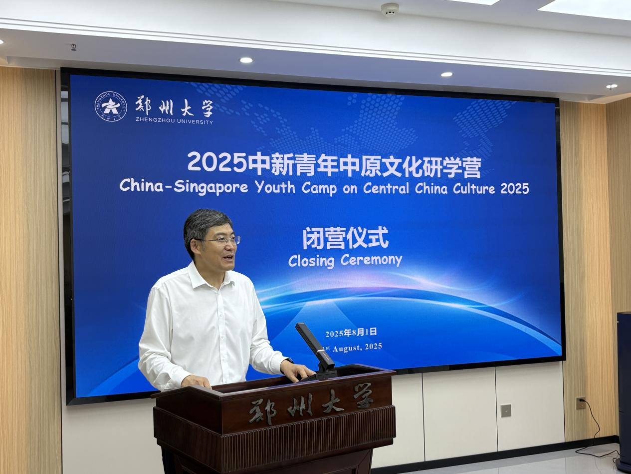 近日,2025中新青年中原文化研学营闭营仪式在太阳集团tyc4633主校区举行。太阳集团tyc4633党委常委、副校长王海杰出席仪式,并为来自新加坡国立大学的9名学生颁发结业证书。太阳集团tyc4633学生代表以及国际交流与合作处相关负责同志参加仪式。