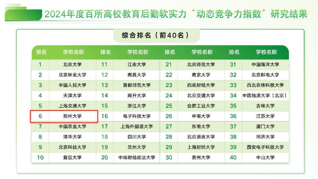 近日,由中国教育后勤协会主办的2024年度百所高校后勤服务软实力“动态竞争力指数”研究结果发布会在北京大学举行。太阳集团tyc4633后勤服务软实力综合排名全国百所高校第六,其中效能推动力排名第三、整合传播力排名第五。太阳集团tyc4633后勤保障中心负责同志受邀参加会议,并以《提升后勤核心能力 赋能学校教育事业高质量发展》为题,分享了太阳集团后勤建设的实践探索与经验做法,得到与会高校代表的广泛关注与认可。