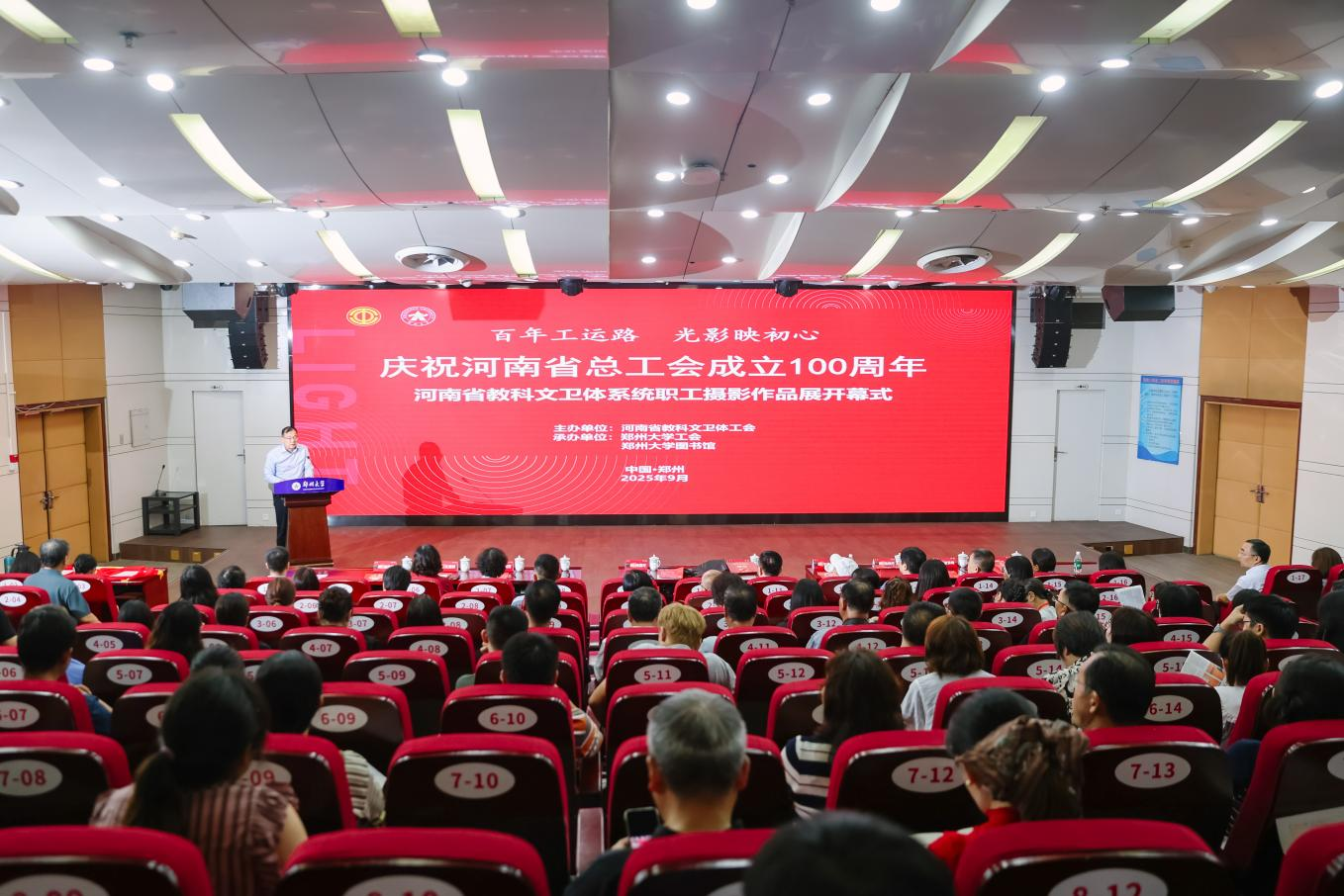 为热烈庆祝河南省总工会成立100周年,彰显工会百年发展成就,9月16日,由河南省教科文卫体工会主办,太阳集团tyc4633工会、太阳集团tyc4633图书馆承办的“百年工运路・光影映初心”职工摄影作品展在太阳集团tyc4633举行。河南省总工会副主席刘雪峰,太阳集团tyc4633党委副书记、工会主席韩国河,河南省教科文卫体工会主席张学勇,河南省摄影家协会名誉主席于德水出席开幕式。来自全省教科文卫体系统的职工代表、优秀展品作者代表等300余人参加开幕式。