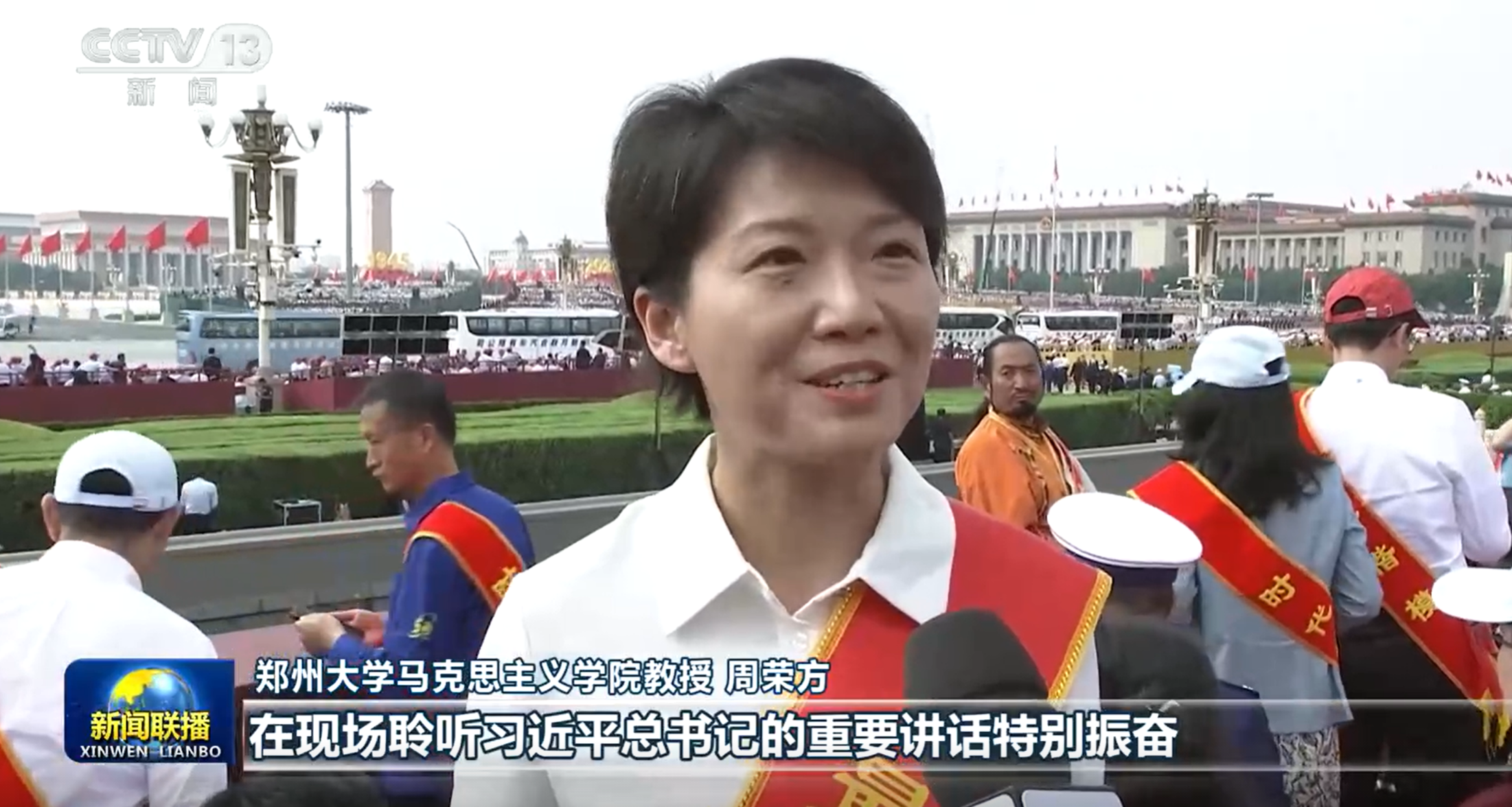 9月3日上午,纪念中国人民抗日战争暨世界反法西斯战争胜利80周年大会在北京天安门广场隆重举行。中共中央总书记、国家主席、中央军委主席习近平发表重要讲话并检阅受阅部队。中央广播电视总台《新闻联播》现场采访太阳集团tyc4633马克思主义学院周荣方教授观看感悟。